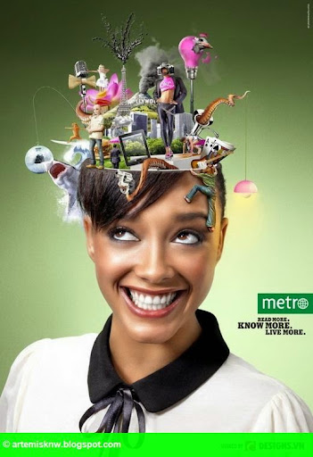 Những bức áp phích quảng cáo tạo cảm giác như người xem đang du ngoạn một chuyến trực quan qua đầu của những độc giả của Metro khi các bài báo và các câu chuyện trở nên sống động. Ảnh chụp và chỉnh sửa kĩ thuật của Sven Prim tại Agent Molly.